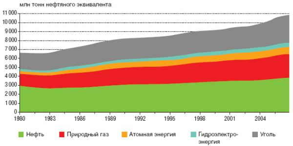 Многими аналитиками в последние годы признается опасность возникновения очередной волны роста мирового энергопотребления. Предшествующая длинная волна, начавшаяся в конце 1940-х годов, завершилась в середине 1990-х годов, увеличив мировое энергопотребление почти в пять раз, а душевое – почти вдвое. Ее окончание было связано со стабилизацией с 1980-х годов среднедушевого энергопотребления в мире за счет сокращения общего и душевого энергопотребления в бывших странах плановой экономики и снижения душевого энергопотребления в странах, входящих в ОЭСР, при относительно умеренном росте душевого энергопотребления в развивающихся странах.