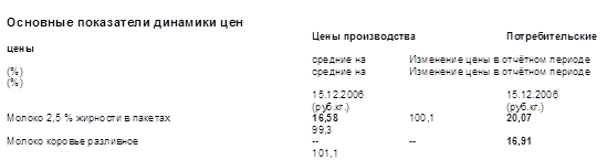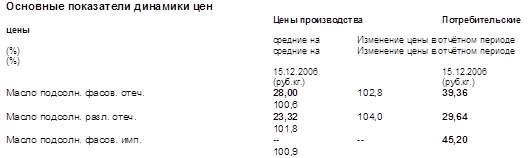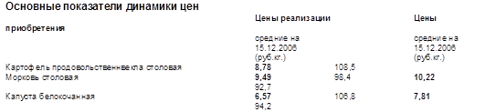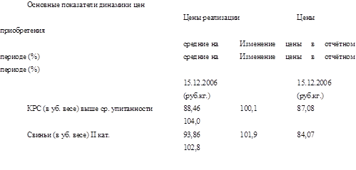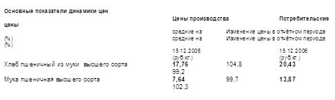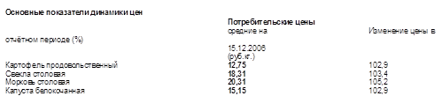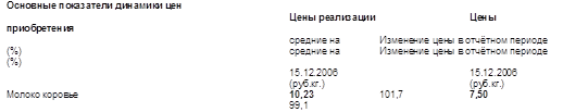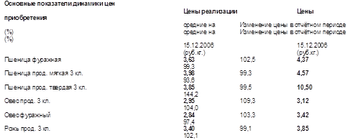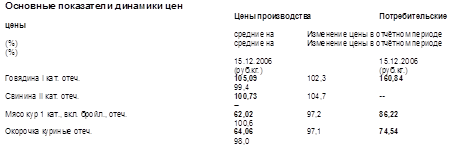 Динамика цен производителей на основные виды сельскохозяйственной продукции (с 1 октября 2006 по 15 декабря 2006)
