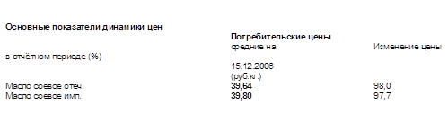 Динамика цен производителей пищевой и перерабатывающей промышленности и потребительских цен на продовольственные товары(с 1 октября 2006 по 15 декабря 2006)