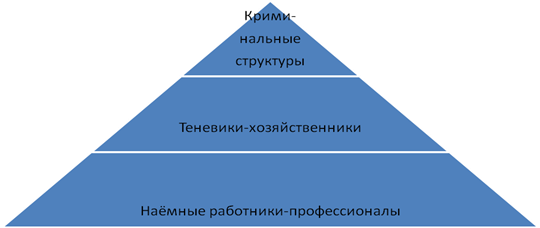 Всех участников теневой экономики, условно можно разделить на три группы, которые можно отразить в виде пирамиды (рис. 2) [24, С. 28-29].