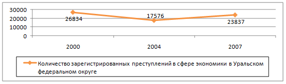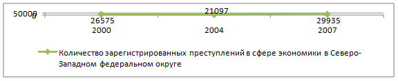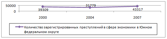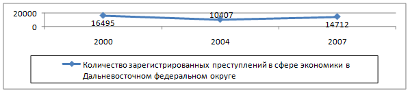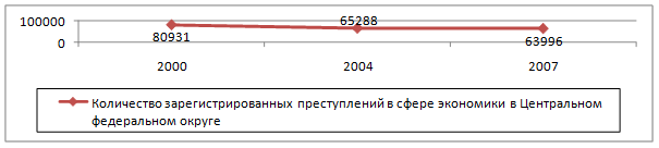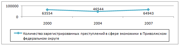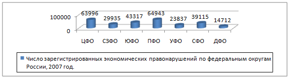 - по данным за 2007 г. наибольшее число преступлений в сфере экономики наблюдалось в Центральном и Приволжском федеральных округах, самое низкое в Дальневосточном;