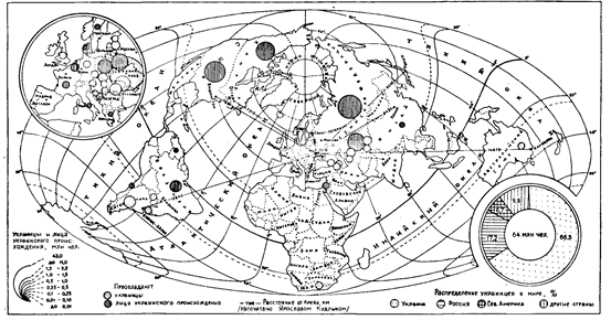4) наличие в Украине большого количества русского населения (по результатам переписи 1989 г., около 12 млн чел., что является, очевидно, завышенной цифрой), особенно в южных и восточных городах, а также проживание в России около 10 млн украинцев;