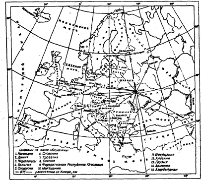 5) близость главного политического центра России — ее столицы Москвы, как к Украине вообще, так и к ее столице Киеву (примерно 600 км). Из столиц «ближнего зарубежья» только Минск находится ближе к Москве, чем Киев, и Кишинев — ближе к Киеву, чем расстояние от него до Москвы;