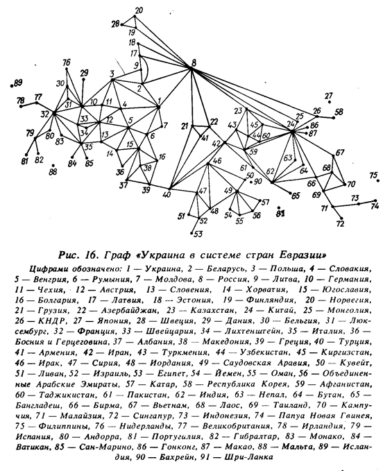 2.3 Теоретико-графовый анализ сети евразийской геополитической системы (рис. 16) подтверждает: