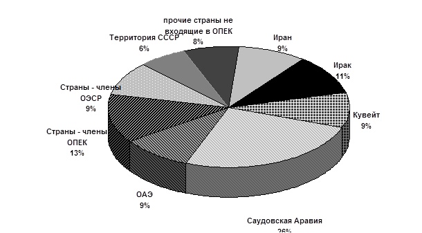 Распределение доказанных запасов нефти по странам и группам стран мира ( % ).