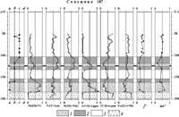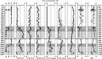 Геохимическая структура разреза краевой группы II типа характеризуется сложным, но выдержанным от скважины к скважине строением, которое нагляднее всего проявлено в керне скв. 187 (Рис. 4). Расслоенная серия, слагающая верхние 125 м керна и перекрывающая породы краевой группы, имеет здесь легко узнаваемую геохимическую структуру. Она отражает последовательную смену оливиновых, двупироксеновых и двупироксен-плагиоклазовых кумулатов [1].