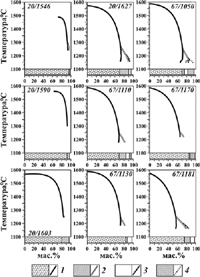 С). Изменение фазового состава модельных систем при понижении температуры показано на Рис. 7. По этим данным появление Ol на ликвидусе происходит при 1560-1590о