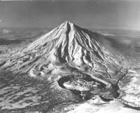 Сильнейшее извержение начала следующего ("андезито-базальтового") этапа произошло около 3500 14 С л.н., когда в вершинном кратере начал расти Молодой конус. Объем пирокластики составил ~4 км3 , пирокластические потоки и пирокластические волны распространялись на расстояние 12-15 км. Главная ось пеплопада была направлена на северо-северо-восток, пепел прослежен в разрезах на протяжении 300 км от источника; он присутствует также в торфянике Командорских островов (мощность 0,5 см). Пепел АВ1 с характерным андезитобазальтовым составом является прекрасным маркирантом для Восточной вулканической зоны Камчатки [33]. Рассматриваемое извержение открыло новый этап в жизни вулкана - андезитовые пемзовые продукты его предшествующей голоценовой истории сменились темными шлаками андезитобазальтового состава. В дальнейшем Молодой конус давал частые (с интервалом от нескольких лет до десятков, реже сотен, лет) извержения, наиболее сильным из которых в историческое время было извержение 1945 г. Во время этого извержения менее чем за 7 часов было выброшено около 0,3 км3 шлаков, которые явились прекрасным подарком городу как замечательный строительный материал.