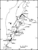 Самое мощное (объем продуктов 8-10 км3 ) извержение Авачинского вулкана (IАв2) произошло 7150 14 С л.н. (~6000 лет до н.э.). Оно открывает этап голоценовой активизации после более чем 2000-летнего периода покоя. Продукты извержения представлены тефрой. Ось пеплопада была направлена на северо-восток в сторону Командорских островов (рис.11), где мощность пепла в разрезах составляет 5-7 см.