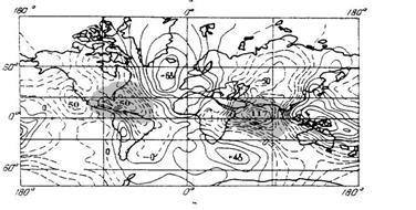 В настоящее время большинство ученых лишь предполагают тесную взаимосвязь значимых в жизни планеты событий \ А. Н. Третьяк, Л. И. Вигилянская \ [9], а их происхождение обуславливают, в основном, космическими катастрофами. В 80-х годах я сформировал гипотезу позволившую понять условия возникновения магнитного поля, его тесную связь с электрическим полем Земли. Я полагаю, что магнитные поля планет Солнечной системы имеют общую этиологию, вызваны или воздействием мощного прилива на электроносферы, как на Юпитере, тогда ось полюсов направлены в сторону светила и будет перемещаться по планете со скоростью ее вращения или асимметрично разрушенной корой как у Земли и Венеры. Если эти два фактора незначительны, то магнитное поле образовываться не будет. Для Земли, определяющим фактором при обычной полярности с учетом наличия остаточного сверхсжатия и электроносфер - выступает асимметрия площадей материков в Северном и Южном полушариях, 105 и 49 миллионов квадратных километров соответственно. Материковая кора гораздо мощнее океанической, менее теплопроводна, под горными массивами ее толщина доходит до 180 километров, в то время как под океанами около 9. / Смотри рис.8./ В моей модели материки Северного полушария как бы «выдавливают» электроны с электроносфер в Южное полушарие, тем самым создается электрический диполь, вызывающий электрическое поле. А под его влиянием, огромные массы свободных электронов в электроносферах приобретают общую полярность, то есть один спин, что и приводит к образованию магнитного поля. Если сказать образно, то у мощного магнитного поля Земли очень слабый «поводырь», в виде статического электрического поля, которое на высоте 2-х километров не регистрируется, в то время как магнитное распространяется на сотни тысяч километров. С учетом данной связи, можно легко понять причины его неустойчивости и возникновения магнитных бурь под влиянием приближающихся к Земле масс заряженных частиц, тектонических явлений, ударов метеоритов, приливов и прочее. Данные явления оказывают воздействие в первую очередь на электрическое поле, а оно легко поддается влиянию этих сил, своим меняющимся направлением изменяет поляризацию электронов в электроносферах Земли, тем самым, приводя в движение магнитное поле. Во первых, инверсии магнитного поля происходят из-за изменения баланса теплопродукции, связанного с изменением угла между плоскостями орбит нашей планеты и Солнца, а правильнее сказать в моменты смены направлений. Во вторых, внеочередное исчезновение или даже смена магнитного поля может наступить от гигантского выброса заряженных частиц Солнцем в период с сентября по март. В указанный период Южное полушарие с относительным избытком отрицательных зарядов может попасть под влияние большей доли приближающихся положительно заряженных масс плазмы, что может привести к исчезновению электрического поля Земли, а, следовательно, к исчезновению и магнитного поля. В третьих, на фоне многолетней солнечной активности, абсолютный ее спад с апреля по август. При обычной магнитной полярности, в указанный период, электрическое поле наиболее слабое и отсутствие дополнительных положительных зарядов и снижение теплопродукции Земли может вызвать его исчезновение.