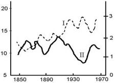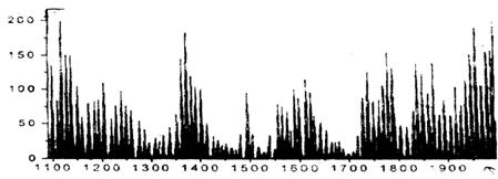 Рис.12 Диаграмма изменений солнечной активности. По вертикали – число Вольфа, по горизонтальной оси – годы.