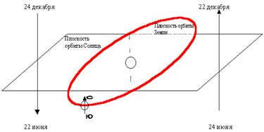 Рис.11 Схема колебательных движений Земли в северном и южном направлении в течение года , относительно плоскости орбиты Солнца.