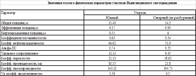 Северный участок рекомендовано [1] разбуривать с применением гидроразрыва пласта, так как эта зона характеризуется наиболее ухудшенными геологическими характеристиками и низкими фильтрационно – емкостными свойствами (таблица).