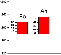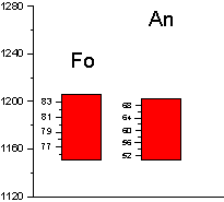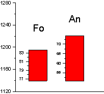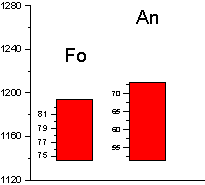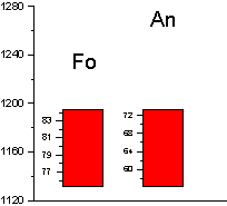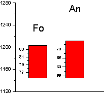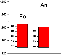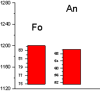 Далее снова проводились расчеты в КОМАГМАТЕ, но уже с новым значением давления, и новая полученная температура использовалась для расчета шпинелей. Таким образом, за несколько итерации значения температуры и давления сошлись на величинах 1195 0 С и 1,3 кбар соответственно.