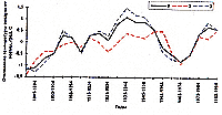 | Можно выделить два периода с отчетливо выраженным повышением температуры воздуха на Севере: с конца XIX века по 1940-е годы XX века (этот период называется "потеплением Арктики") и с середины-конца 1960-х годов до настоящего времени (рис. 2). Последнее (современное) потепление пока не достигает размеров "потепления Арктики". Более того, в начале 1990-х годов на ряде арктических метеостанций наблюдалось заметное похолодание. Однако последующие годы оказались достаточно теплыми, что явилось причиной сохранения общей тенденции потепления климата в наши дни. |