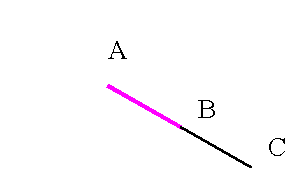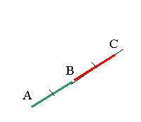 Пользуясь зрительным эффектом, состоящим в загораживание двух колышков третьим, стоящим на общей с ними прямой, нетрудно установить ещё один колышек в некоторой точке С на продолжении отрезка с концами в двух данных точках А и В. после этого точки отрезка АВ можно построить с помощью того же эффекта, поскольку они будут лежать на продолжении либо отрезка АС, либо ВС (в зависимости от того, какая из точек - А или В - находятся ближе к точке С). Вообще, любая точка прямой АВ будет лежать на продолжении хотя бы одного из отрезков АВ, АС или ВС.