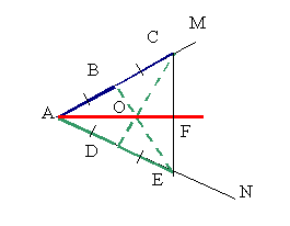 Выберем на стороне данного угла точки В и С, а на другой - точки D и Е так, чтобы выполнялись равенства