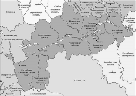 Поволжский экономический район Российской Федерации протянулся почти на 1,5 тыс. км вдоль Волги от впадения в нее левого притока Камы до Каспийского моря. Территория - 536 тыс. км2 (рис.1).
