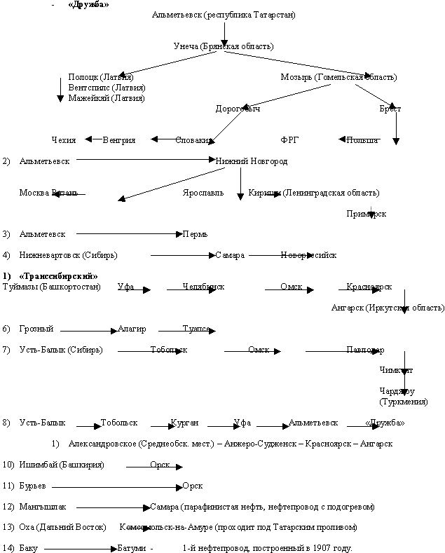 Большая часть Западно-Сибирской нефти используются на европейской территории России и лишь небольшая – в Сибири. Около 50 млн. тонн ежегодно идет на Украину и Беларусь. А 100 млн. тонн нефти идет по нефтепроводу “Дружба” в страны Европы.