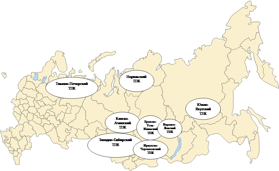 Тимано-Печорский ТПК , включающий в свой состав Архангельскую область и Республику Коми, занимает площадь, превышающую 1 млн.кв. км, что составляет более 25% всей территории Европейской части России.