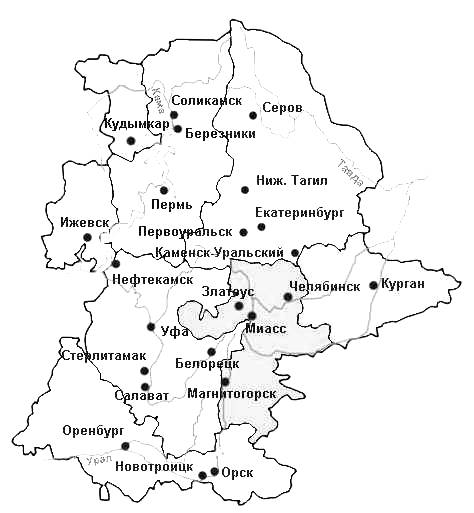 Рис.1 Положение Уральского экономического района на карте РФ.