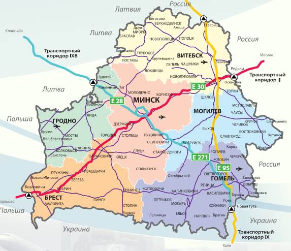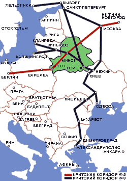 2) Транзитное геополитическое положение Республики Беларусь признано Европейским Союзом, которое, определяя существующие и будущие грузопотоки, выделило на территории страны два (названных Критскими) транзитных коридора — II и IX.