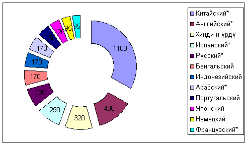 Сравнительная таблица распространения языков среди мирового сообщества, млн. человек
