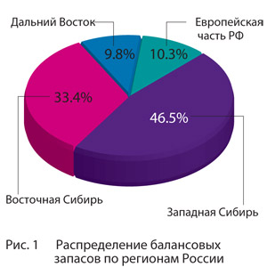 Основной объем (до 80%) балансовых запасов приходится на районы Западной и Восточной Сибири (рис. 1).