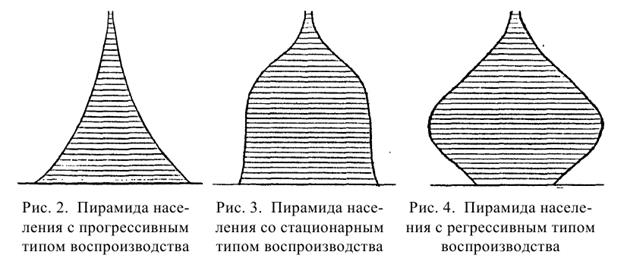 1) Тип воспроизводства населения который характеризуется высокой рождаемостью и смертностью. Возрастная пирамида такого населения имеет широкое основание которое образует высокая доля детей в населении и шпилеобразный верх, т.е. малая доля доживающих до пожилого возраста. Боковая сторона такой пирамиды имеет вид вогнутой параболы.