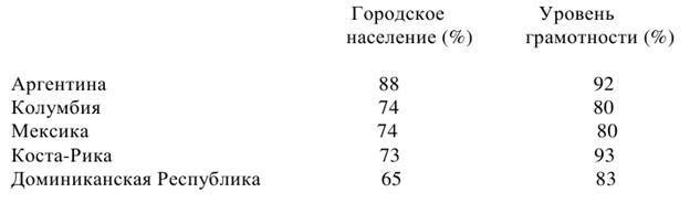 И, как следствие, значительное падение рождаемости: в 1999 году коэффициент суммарной рождаемости для этой группы стран – 3,7-4,3; в 2009 году для Доминиканской Республики и Коста-Рики – 2,8; для Аргентины – 2,25; для Колумбии – 2,22; для Мексики – 2, 21.