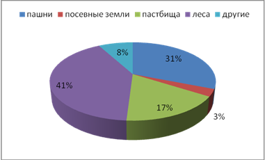 Одно из основных богатств Словакии – земельно-почвенные ресурсы. Хотя деятельность человека в Словакии привела к изменению характера вегетации и заметно обезлесила низменности и горные котловины, в горных областях сохранились значительные лесные массивы. Обеспеченность лесными ресурсами, по сравнению с большинством европейских государств, довольно высокая: леса и лесонасаждения занимают около 41% территории страны.[13,с.8], в то время как в Польше – лишь 28%[5,c.288]. Страна принадлежит к области бурых почв и к зоне лиственных лесов. Пахотные земли составляют 31% от всего землепользования, а посевные – 3%(см. рис.1.1). Всего орошаемые земли составляют 1830 кв.км.