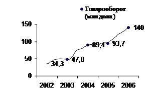 Также необходимо отметить, что Словакия входит в число четырех европейских стран, которые активно развивают торговое сотрудничество с Республикой Беларусь (см. данные приложения 3.2.1). В период с 2002 по 2006 гг. товарооборот между странами увеличился в несколько раз, что отражено на рис. 3.3.2.