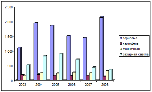 В 2008 г. в Словакии повысилась урожайность зерновых культур и составила 2135 кг./га, что на 47 % больше, чем в 2007 г. [19] Также наблюдаются небольшие изменения в урожайности картофеля, сахарной свеклы и масличных культур, что отражено на рис. 4.2.1.
