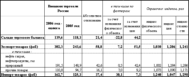 Влияние отдельных факторов на изменение торгового баланса России в 2006 году