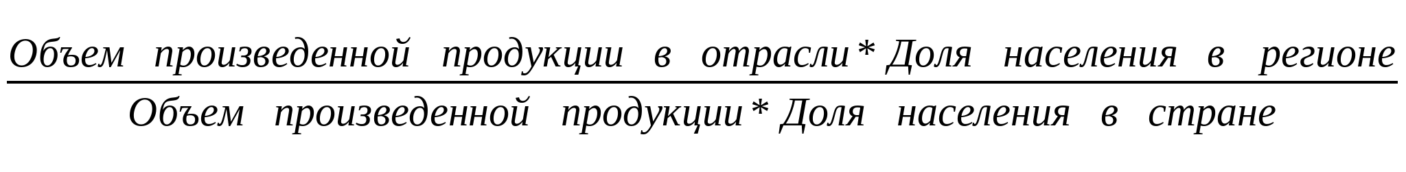Чем в большей степени показатель приближается к 1, тем в большей степени отрасль является отраслью специализации.