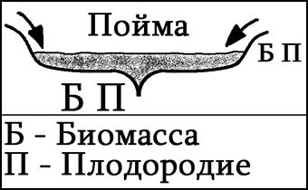 В долинах крупных рек появилось земледелие, но не повсеместно. В междуречьях в период половодья смывается большое количество вещества K, P, N, Ca, Mgпоступают в главную реку, выносятся в бассейн, куда впадает. Во время половодья большая часть питательных элементов откладывается в пойме – часть, затапливаемая во время половодья. Часть выносится, но большая часть аккумулируется.