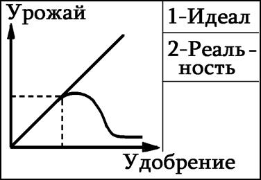 Либих предполагал, что при повышении количества удобрений, урожай будет выше. Но на