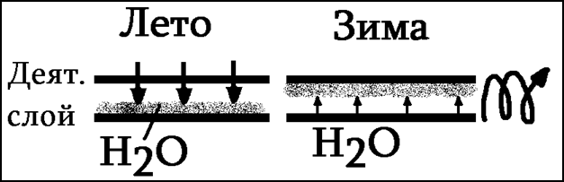 Из-за постоянных “–“ отрицательных температур развиваются процессы приводящие к перемешиванию грунта в верхнем слое.