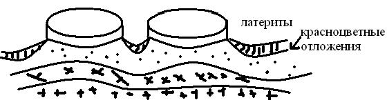Должно идти интенсивное биохимическое выветривание → наличие мощной коры выветривания. Латеритные – красноцветные коры выветривания. Красные латеритные почвы. В горах наиболее распространены железо и алюминий. Минералы должны распадаться до отдельных оксидов.