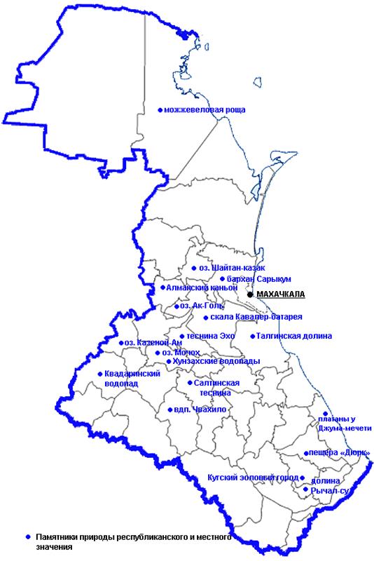 Дагестанская зона Прикаспийского региона - одна из наименее освоенных и наиболее перспективных в рекреационном отношении территорий побережья Каспийского моря. Приморская зона Дагестана, от р. Сулак до границы с Азербайджаном протяженностью около 200 км, имеет наиболее приятные климатические условия - теплое лето, мягкую зиму, низкую относительную влажность воздуха. По сумме солнечной радиации (117 ккал/см2 ) Дагестанское побережье Каспийского моря превосходит такие курорты как Ессентуки, Батуми, Кисловодск и сходно с районом Сочи (118 ккал/см2 ).