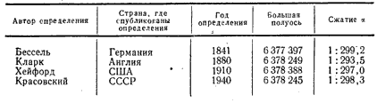 Установление размеров земного эллипсоида, наиболее близко подходящего по своей форме и размерам к фактической фигуре Земли, имеет большое научно - теоретическое и практическое значение. Это важно для создания точных топографических карт. Если размеры земного эллипсоида будут установлены неверно, то это приведет к неверным исчислениям при проектировании на его поверхность (а следовательно, и при изображении на картах) всех длин линий и размеров площадей по сравнению с их действительными размерами на уровенной поверхности Земли. Размеры земного эллипсоида в разное время определялись многими учеными по материалам градусных измерений. Некоторые из них приведены в таблице 1: