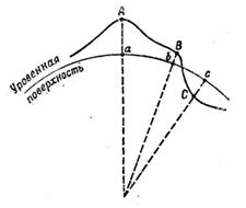 Рис.2 Проектирование физической поверхности Земли на уровенную поверхность.