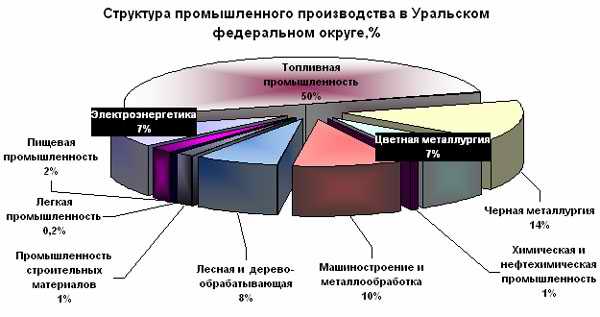 Индустриальный комплекс Урала – один из самых мощных в стране. Это старопромышленный район, отличающийся высоким уровнем комплексного развития, исторически сложившейся, устойчивой производственной структурой. Отраслями рыночной специализации Уральского федерального округа являются топливная промышленность черная и цветная металлургия, машиностроение, химическая и нефтехимическая, лесная, деревообрабатывающая и целлюлозно – бумажная промышленность. Важное значение имеет также производство строительных материалов ( цемента, строительного кирпича и др. ) . Урал производит от 20 до 40 % общероссийского выпуска металлорежущих станков, экскаваторов, нефтеаппаратуры, химического оборудования и машин для сельского хозяйства, свыше 35 % чугуна, около 15 % деловой древесины и пиломатериалов, почти 20 % бумаги. Электроэнергетика , пищевая и легкая промышленность, а также сельское хозяйство дополняет хозяйственный комплекс Урала. Существенное влияние на формирование хозяйства Уральского федерального округа оказывает его чрезвычайно выгодное экономико – географического положение. Урал занимает центральное положение в стране. Урал имеет важное значение как машиностроительная база освоения восточных районов. Благоприятное экономико – географическое положение Урала способствует повышению его роли в межрайонном территориальном разделении труда.