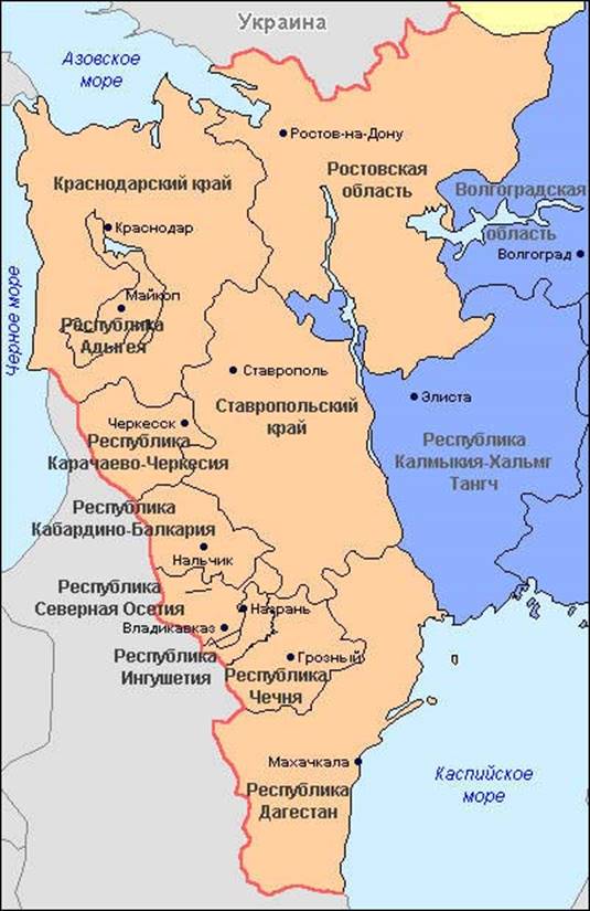 В состав Северо-Кавказского экономического района входят республики Адыгея, Дагестан, Ингушетия, Кабардино-Балкарская, Карачаево-Черкесская, Северная Осетия – Алания, Чеченская, а также Краснодарский и Ставропольский края и Ростовская область. < см. Приложение 1>
