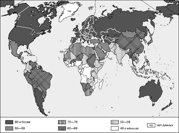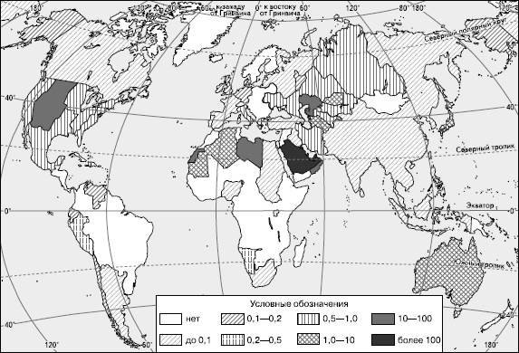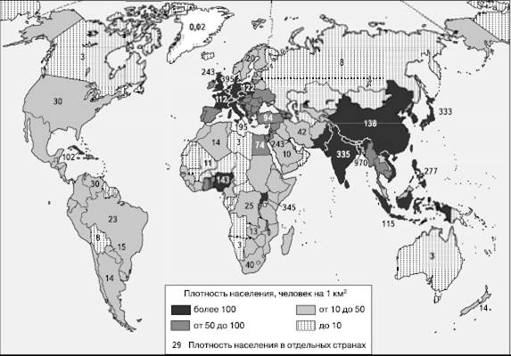 54. Неравномерность размещения населения земного шара