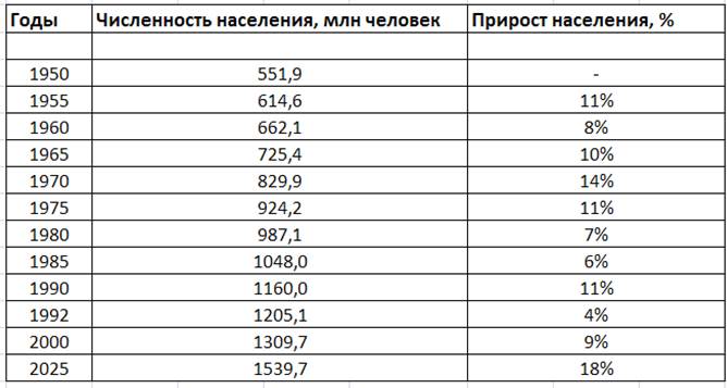 Таблица А.1 – Статистика населения Китая (1949-2004)
