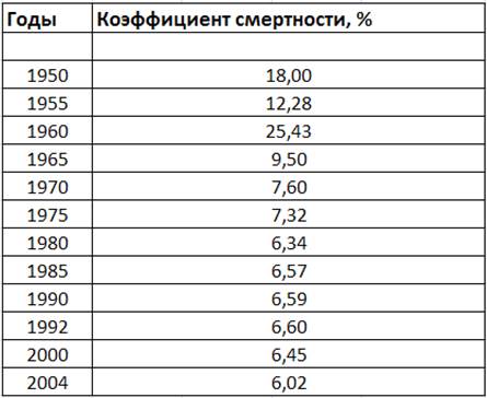 Таблица 3 - Динамика коэффициента смертности в КНР