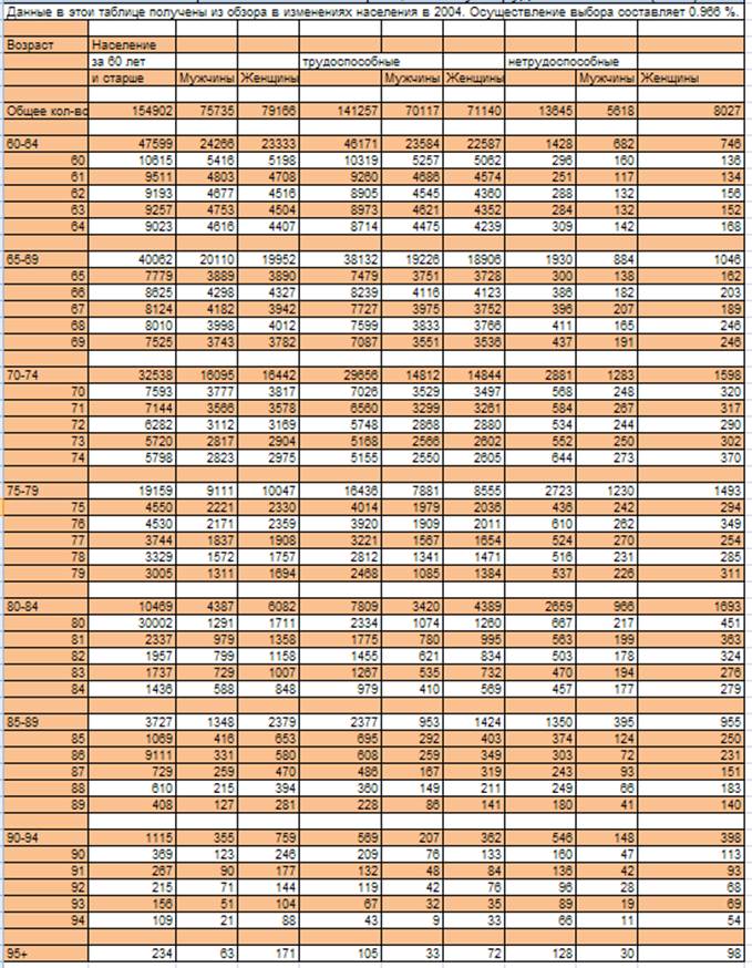 Таблица Б.2 - Население Китая в возрасте от 60 лет и старше, по полу и трудоспособности (2004)
