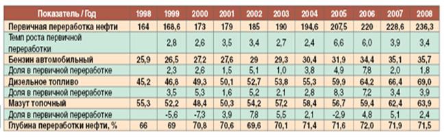 Таблица 2.Основные показатели нефтеперерабатывающей промышленности РФ [7, c.356].