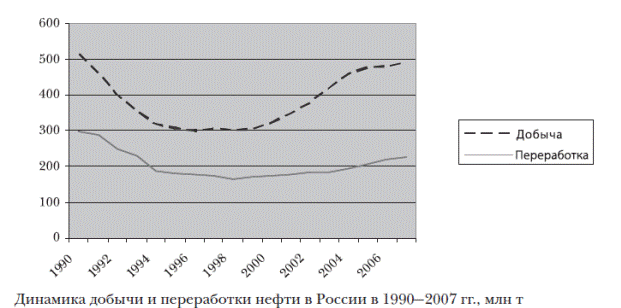 За послеперестроечные годы не было построено ни одного нефтеперерабатывающего завода. Имеющиеся предприятия работают с перегрузкой. Только у «Лукойла» коэффициент загрузки мощностей приблизился к отметке в 95%, а принадлежащий «Сургутнефтегазу» Киришский НПЗ работает на пределе мощности с загрузкой почти 100%. Уровень износа основных фондов в нефтедобыче близок к 65%, в нефтепереработке - к 80%. Общей современной тенденцией в структуре использования нефти в мировой экономике является снижение доли ее потребления в электро- и теплоэнергетике в качестве котельно-печного топлива и увеличение — в качестве транспортного моторного топлива и нефтехимического сырья.